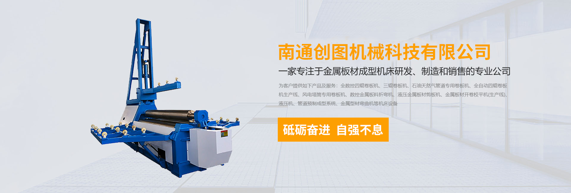 數控折彎機,剪板機,刨槽機,全數控四輥卷板機、三輥卷板機、石油天然氣管道專用卷板機、全自動四輥卷板機生產線、風電塔筒專用卷板機、金屬板材開卷校平機(生產線)、液壓機、管道預制成型系統、金屬型材彎曲機等機床設備,公司以精湛的設計能力,雄厚的加工制造能力,完善的售后服務能力,產品暢銷國內20多個省、直轄市,并遠銷德國、阿根廷、俄羅斯、印尼、伊朗等30多個國家和地區。